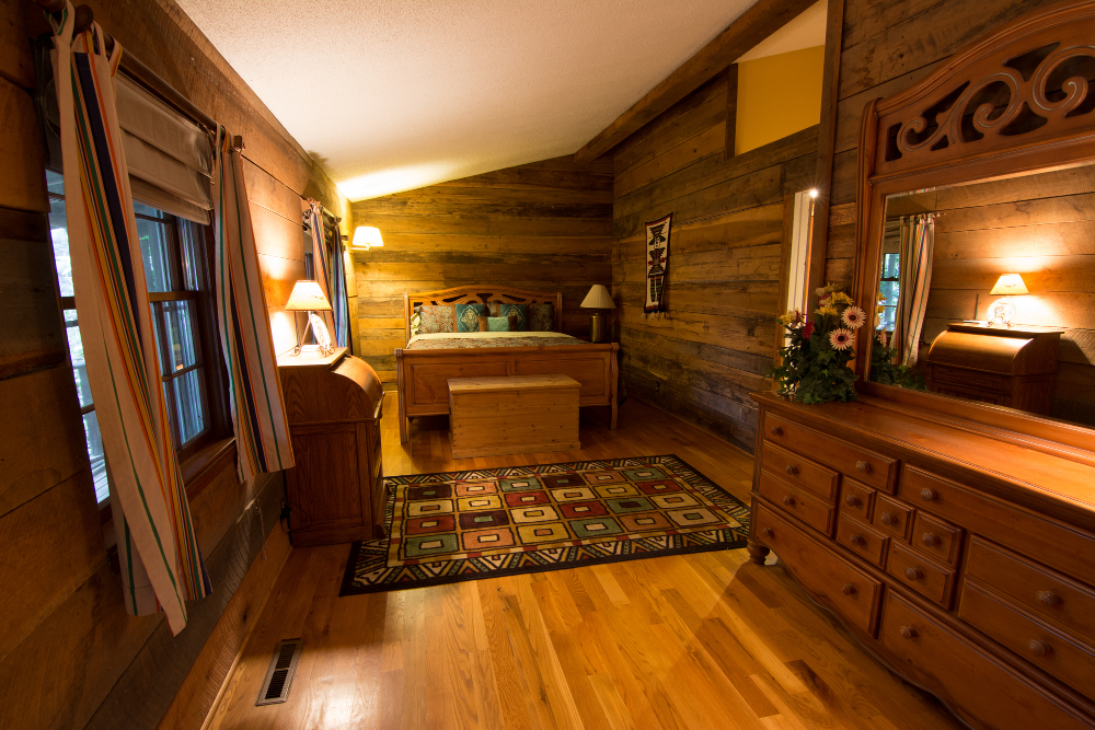 If you like the feel of a cabin, but would like it all on one level with space to cook, this should be your pick.