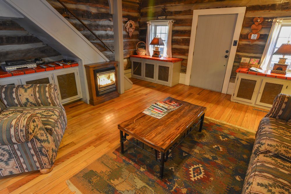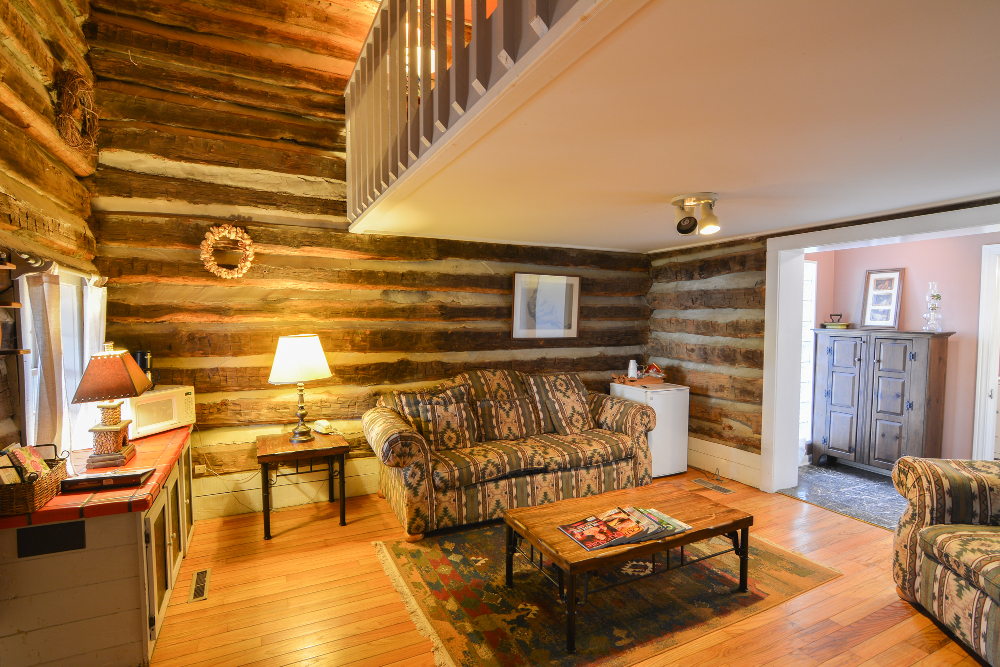 We offer one tobacco barn cabin that is attached to our main lodge that has gas logs, jacuzzi bath & shower, king size bed, high speed wireless internet, full satellite, TV & DVD, Central Heat/AC. With 850 sq ft of luxury and the largest whirlpool tub of all our cabins, you're sure to enjoy! A Full Breakfast is included with all rooms and cabins. Breakfast is served daily from 8:30 to 9:30 a.m. Anytime between that hour you may be seated. Guests are welcome to pick up their breakfast and take it back to the room. Fireplaces are seasonally operational from September 1st to May 31st.