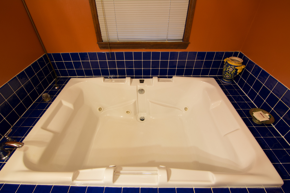 - 105 gallon jacuzzi bath, well oversized for two, with Spa Like Shower in Jacuzzi that comes down the center of the jacuzzi with Large Shower Dial for Spa Like Experience!