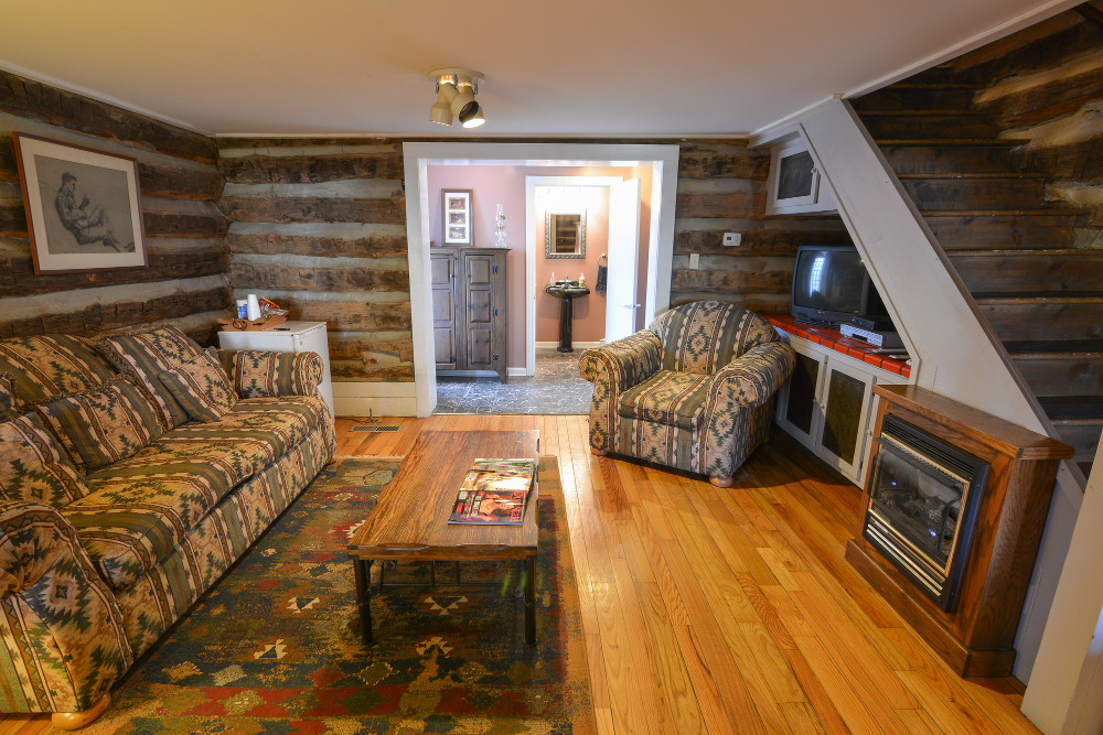 We offer one tobacco barn cabin that is attached to our main lodge that has gas logs, jacuzzi bath & shower, king size bed, high speed wireless internet, full satellite, TV & DVD, Central Heat/AC. With 850 sq ft of luxury and the largest whirlpool tub of all our cabins, you're sure to enjoy! A Full Breakfast is included with all rooms and cabins. Breakfast is served daily from 8:30 to 9:30 a.m. Anytime between that hour you may be seated. Guests are welcome to pick up their breakfast and take it back to the room. Fireplaces are seasonally operational from September 1st to May 31st.